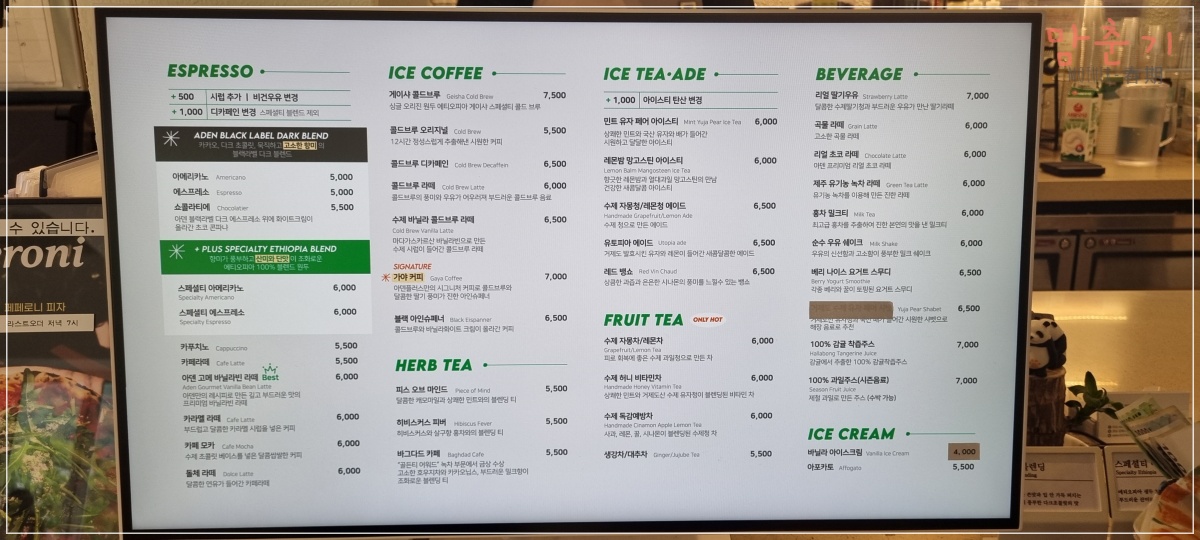 저희 가족이 카페에 도착했던 오후 1시 26분쯤엔, 이미 북적이던 손님들로 군데군데 소진된 메뉴도 보였습니다.