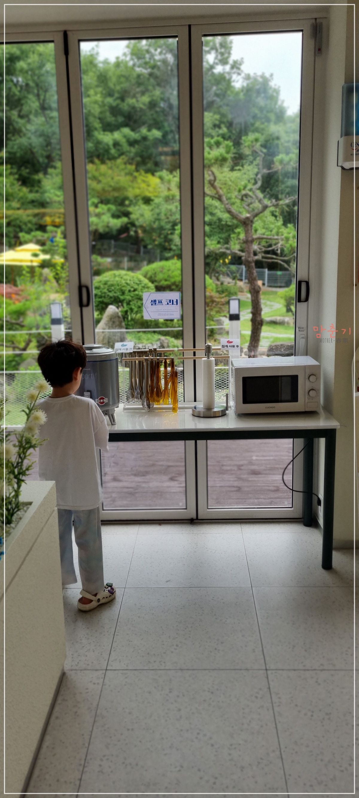 셀프 코너에 전자레인지도 있어 빵을 데우거나 아이 이유식 등을 데우기 편리해 보였습니다.