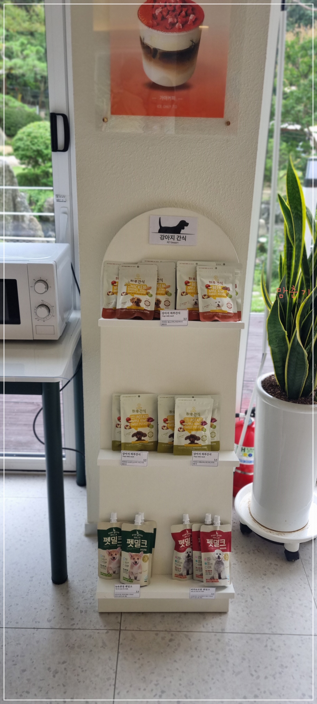 또 흥미로웠던 점이 바로 셀프코너 옆에 비치된 강아지 간식이었는데요.
