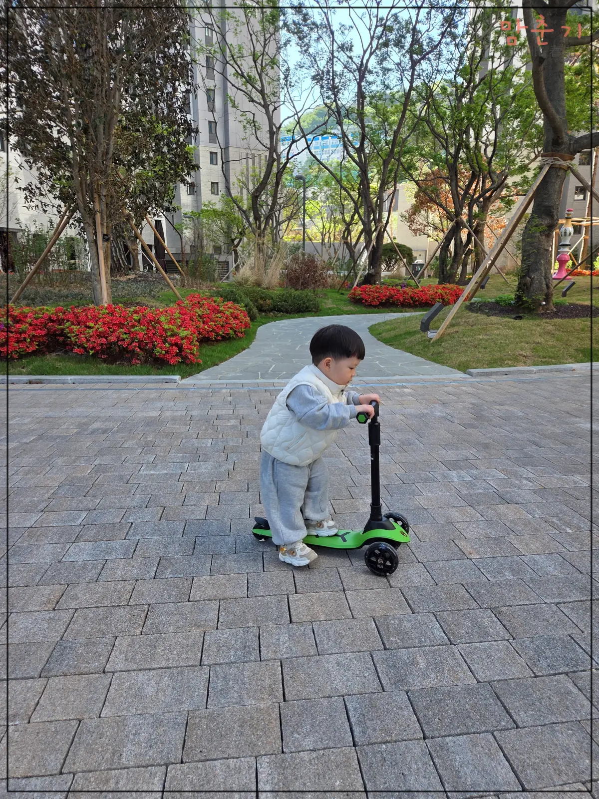 이제 날씨가 점점 따스해지는 게 아이와 킥보드 하나 들고 공원 산책 다니기 참 좋은 타이밍인 것 같다. 킥보드는 대근육 발달, 균형 감각 향상, 협응력 발달, 공간 지각 능력 발달에 모두 도움이 된다 하니 놀면서 발달에 도움도 주는 좋은 방법이다.