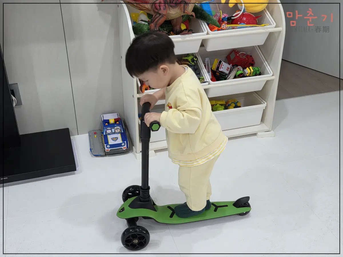 이 날 잘 시간이 지나서 재우려는데 꼭 침대 옆에 킥보드를 두고, 만지면서 자려고 해서 엄마는 속이 터질 뻔했다. 아이를 재우려고 1시간가량 실랑이를 하면서 또 인내심이 어찌나 시험당했던지. 순간 킥보드를 괜히 사줬다는 생각이 들 정도였다.