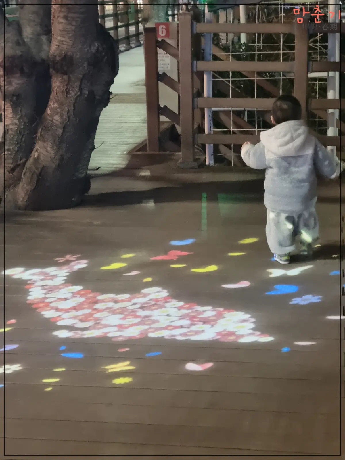 아직 날씨가 쌀쌀했지만, 온천천 산책로가 잘 되어 있고 조명을 보고 아이가 너무 좋아해서 한참을 재미있게 놀았다.